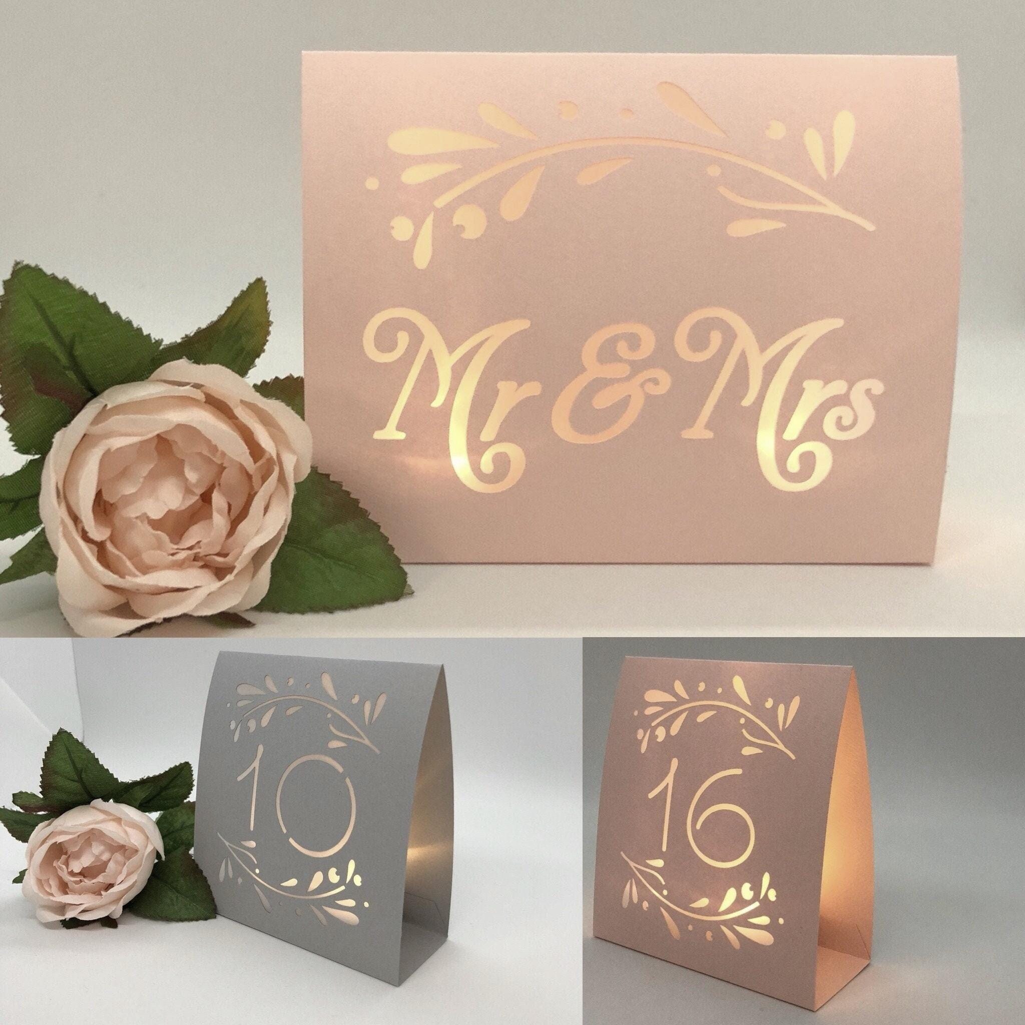 • FREE MR & MRS LUMINARY SIGN WITH PURCHASE OF 12 OR MORE TABLE NUMBERS. I will automatically include this with your order and will make it in the same color as your numbers so no need to order separately. (Convo me if you need something other than Mr & Mrs)