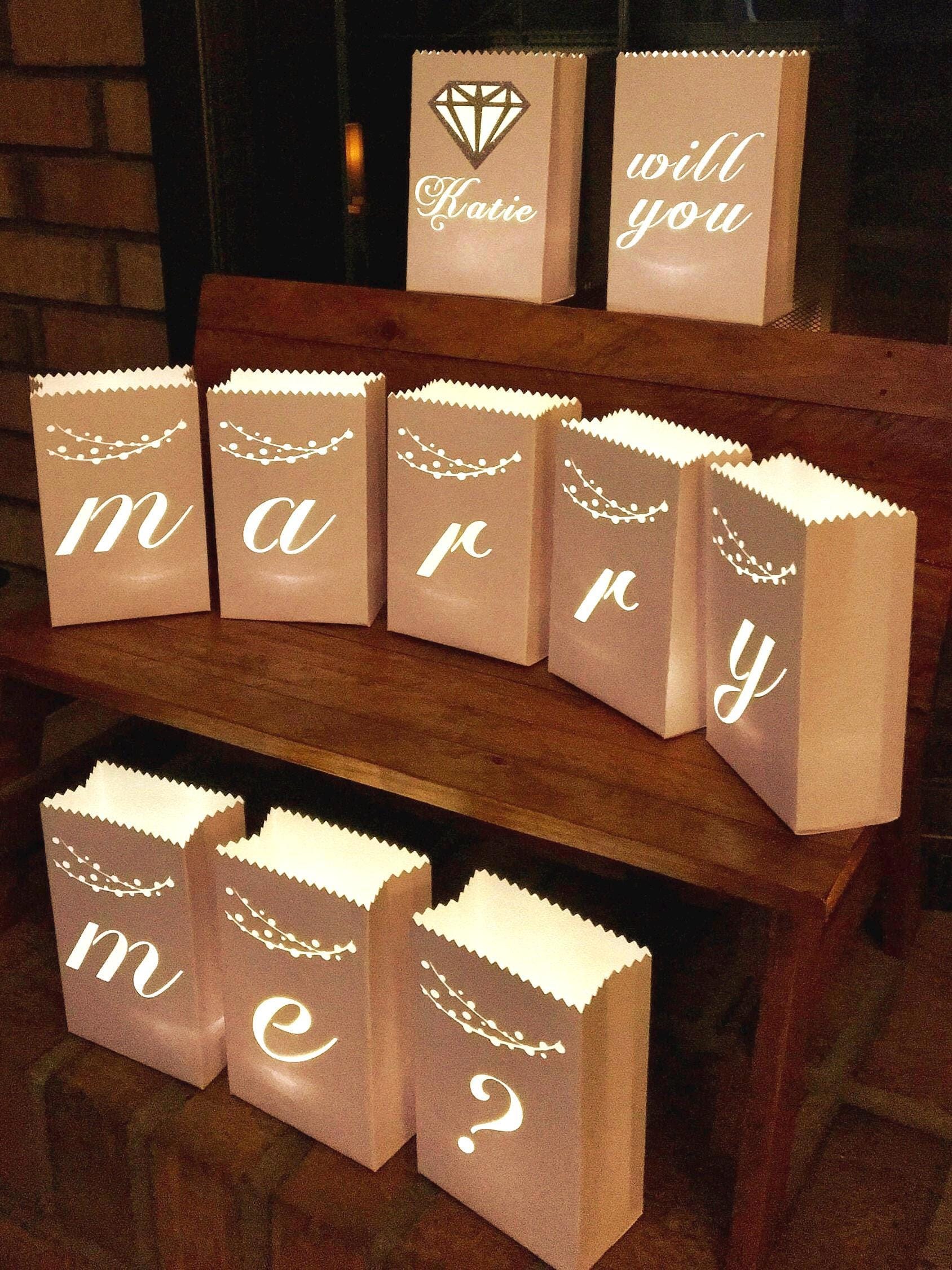 WILL YOU MARRY ME? Your sweetheart will melt when she sees her own name included in the glowing luminary proposal display! These TEN luminary bags are easy to transport and are designed to be used with battery tea lights (NOT included.). It can be set up as a surprise in so many romantically creative ways! Let your imagination run wild! FREE U.S. domestic shipping is included. Don't forget to include a note in your order with the bride-to-be's name!